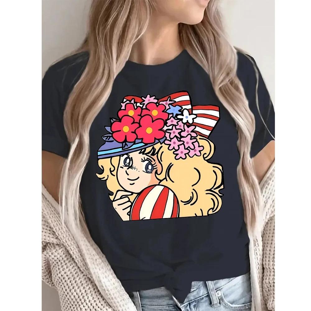 2026 Candy Cartoon Print Streetwear Black T-shirt Harajuku Clothes Fashion Girls T Shirt Short Sleeve Summer Tee Casual Female O-Neck Top