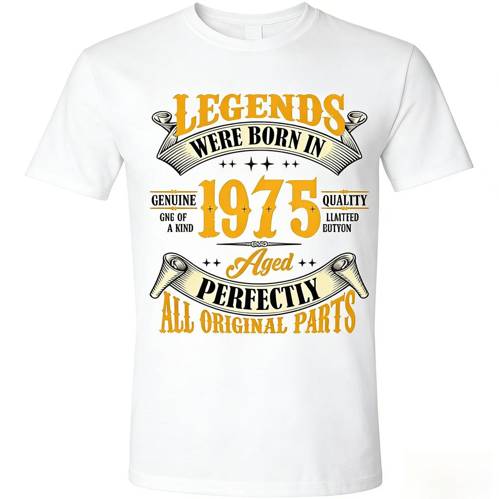 50th Birthday Legends Were Born in 1975 Short Sleeved Round Neck Y2k Tshirt Men Clothing New in Top Tees Mens TShirt