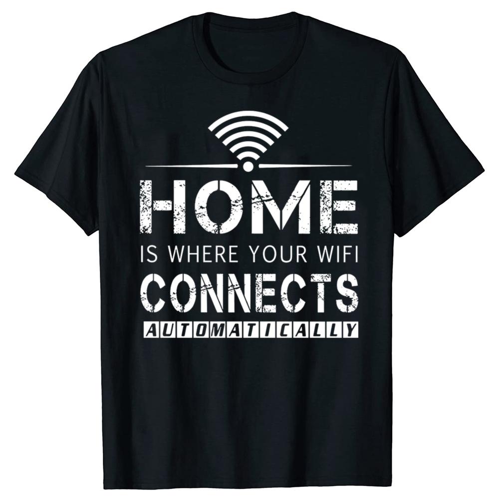 Home is Where The WiFi Connects Humor Graphic Novelty Sarcastic Tee Tops Round Neck Fashion Tshirt Clothing Casual Tshirts