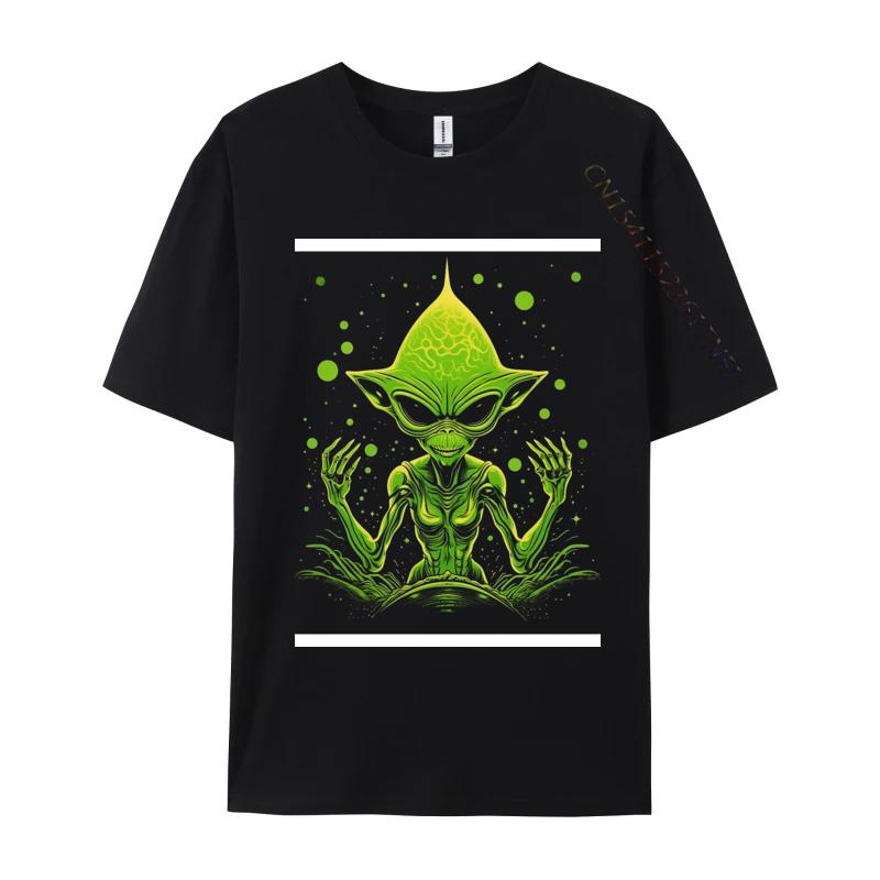Happy Green Alien Tshirt Tops Shirts Retro Hip Hop Combed Cotton Men Top Tshirts Printed Tee Shirt Clothing