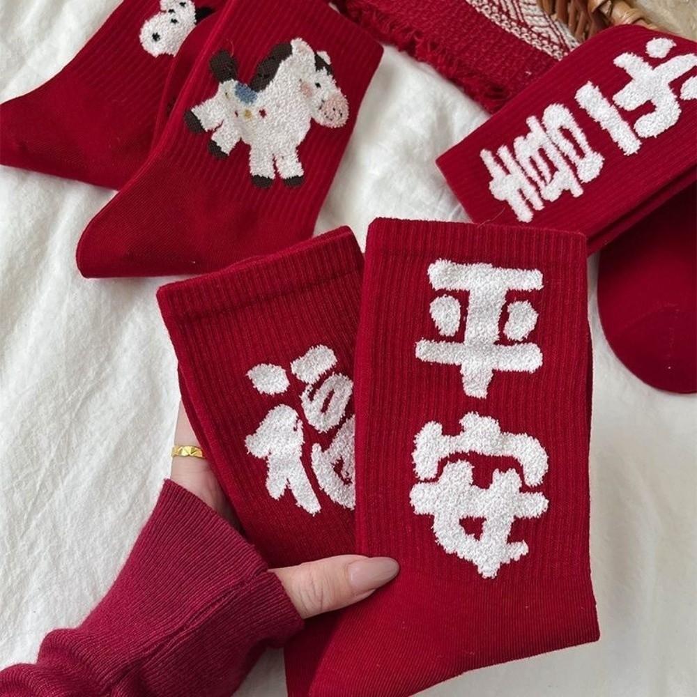 Elastic Horse Pattern Socks Soft Cartoon Red Socks Ladies Socks New Year Socks Holiday Events