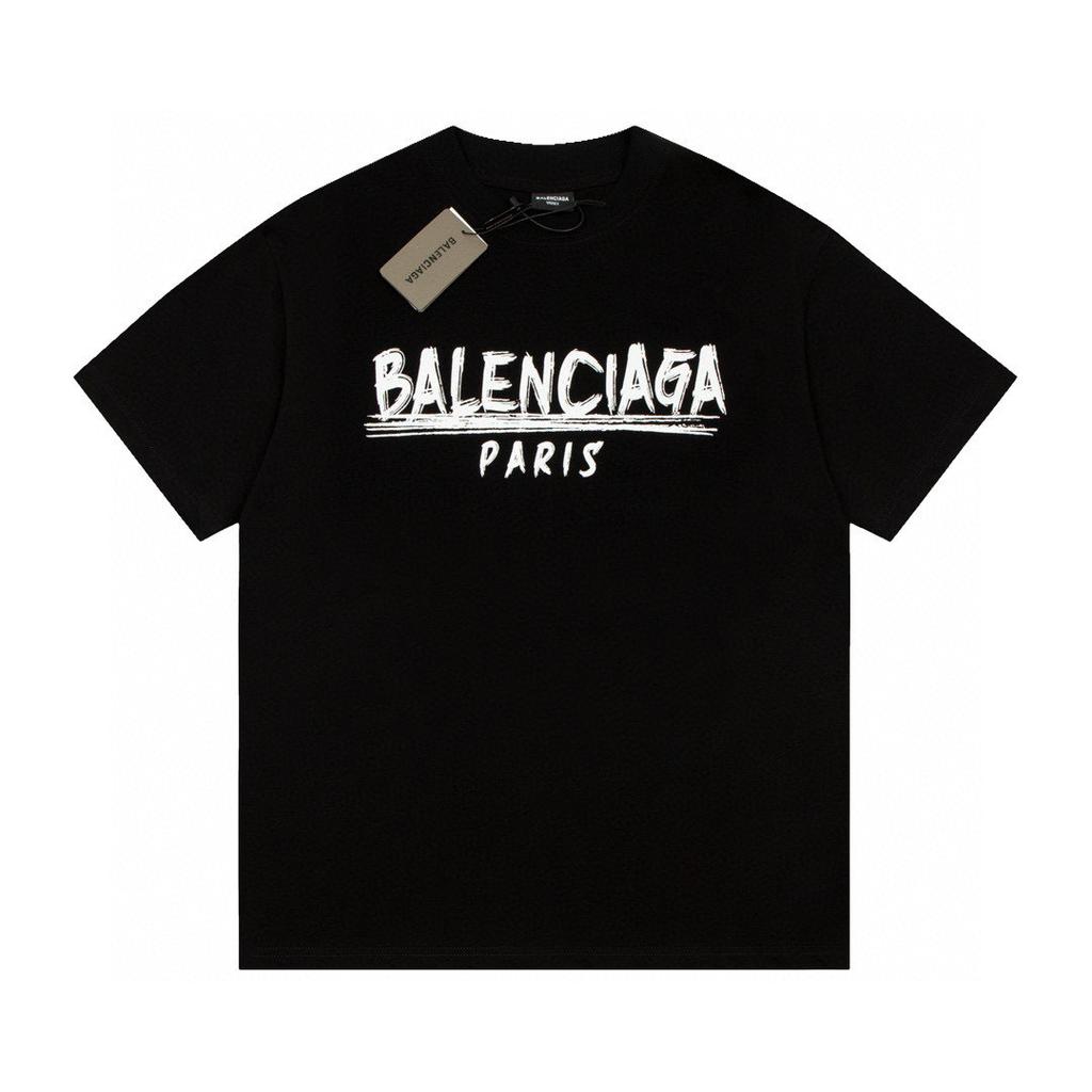 BALENCIAGA Summer New Arrival Cotton Printed Crew-Neck Short-Sleeve T-Shirt Black F127