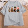 Cute Coffee Characters TShirt Women Men Aesthetic Tee Pumpkin Fall T Shirt Cotton Short Sleeve Aesthetic High Quality Tees
