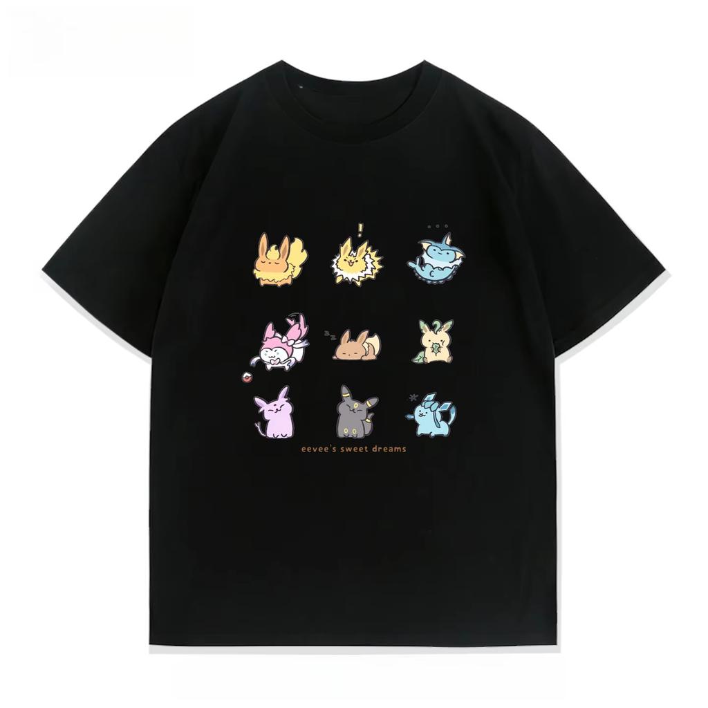 Miniso Pokémon Anime Peripheral Qversion Printed Cotton Tshirt Mens and Womens Loose Harajuku Casual Short Sleeved Top