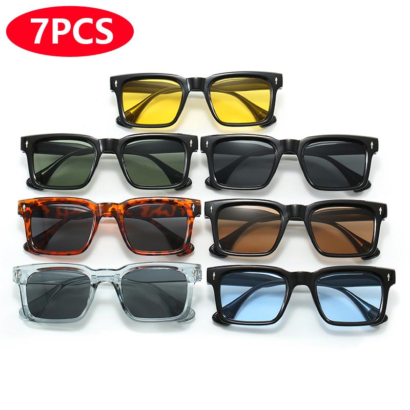 7pcs Rectangular Sunglasses Female Male INS Style Luxury Brand Design Square Sun Eyeglasses Vintage UV Resistant Eyeglasses Unisex