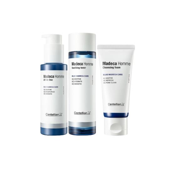 Centellian24 Madeca Homme Full Set is a complete skincare solution designed for men’s daily routine, combining cleansing, hydration, and soothing care in one convenient package. Infused with Centella Asiatica extract, each product helps calm irritation, strengthen the skin barrier, and maintain optimal moisture balance. The set includes a refreshing toner, a multifunctional all-in-one moisturizer, and a gentle cleansing foam for a simple yet effective skincare regimen. Ideal for men seeking easy, efficient, and high-performance skincare.