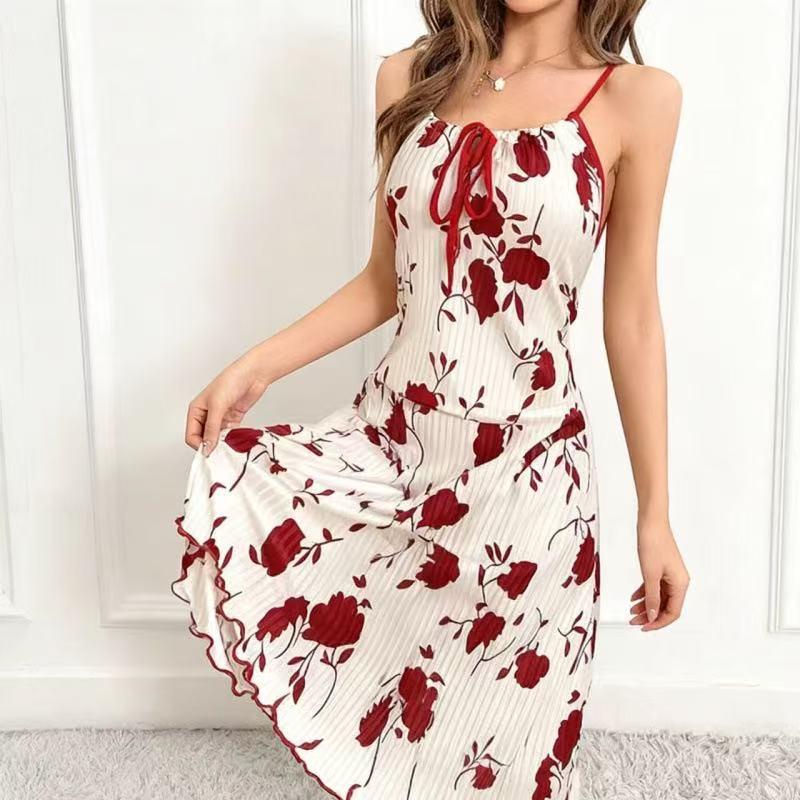 Women's Sexy Printed Camisole Nightgown with Chest Tie-Up
