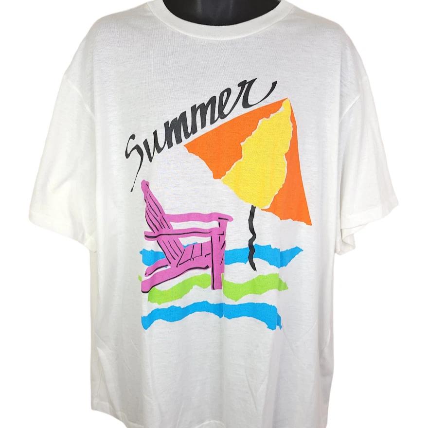 Vintage Summer Vacation 100% Cotton T-shirt Mens Tees Top Mens Size 3XL 80s Adirondack Beach Made In USA