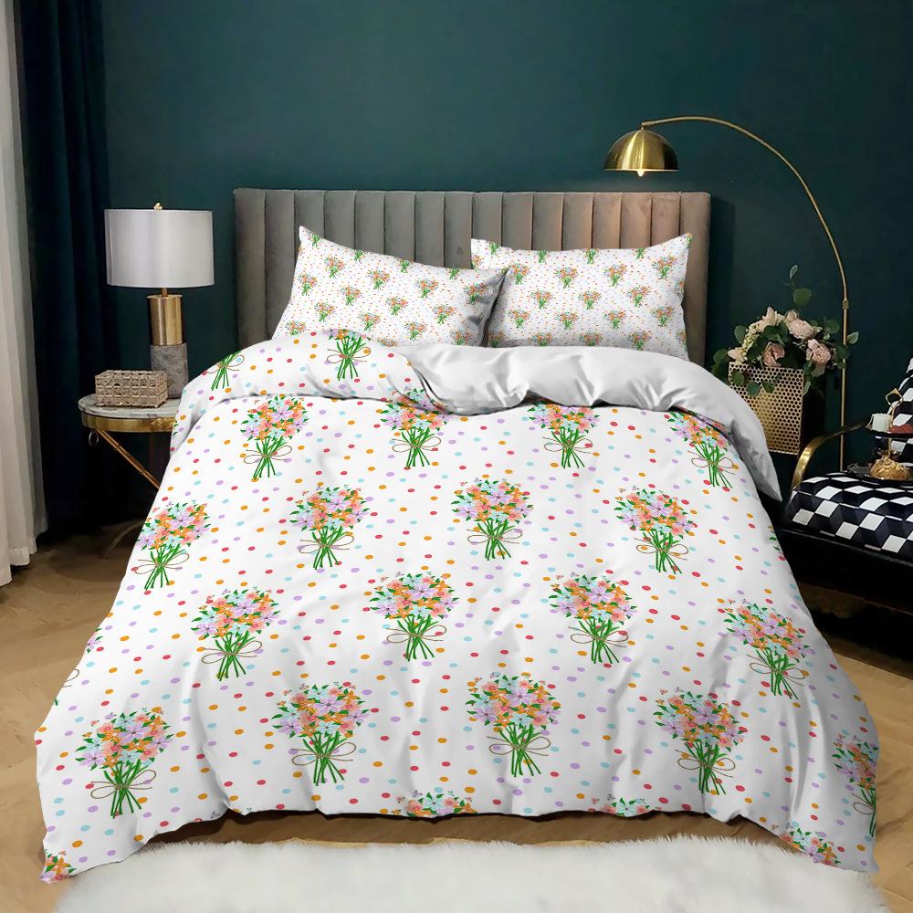 Comforter Small Fresh Microfiber Fresh Garden Style Colorful Flowers Bedding Set For Kids Girl Women Twin Double King Size