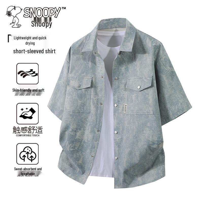 Snoopy Men's Fashion Short Sleeve Collared Shirt
