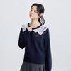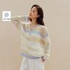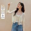 INMAN Women's Striped V-neck Hollow-out Knit Cardigan