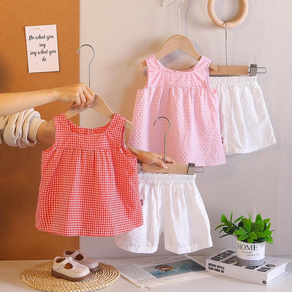 Introducing a charming summer set perfect for your little one, featuring a sleeveless camisole paired with a stylish cardigan. Crafted from soft cotton, this set promises comfort and breathability, ideal for warmer days. The Korean-style design is accentuated with an elegant lace collar, adding a touch of sophistication to her outfit. Perfect for casual outings or special occasions, this set combines fashion and functionality effortlessly.