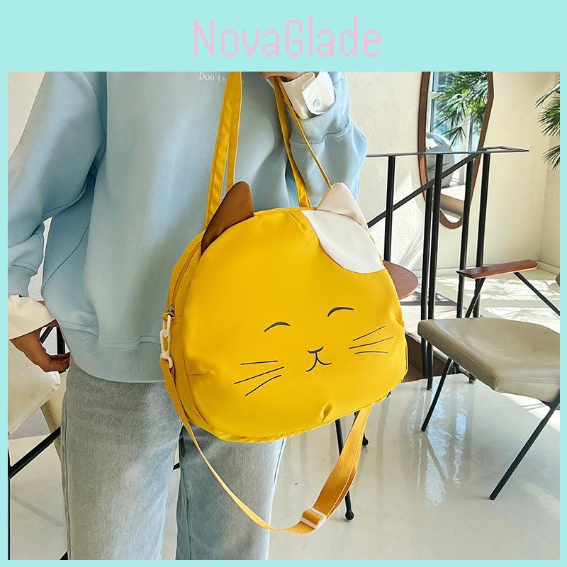 Lovely Cartoon Cat Tote Bag For Students Spacious Nylon Shoulder Bag