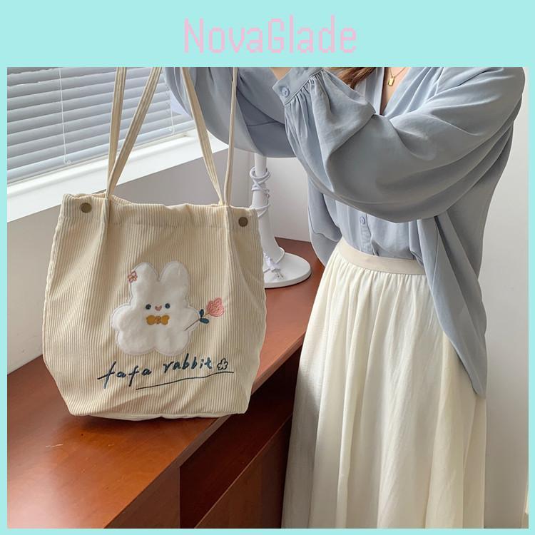 Charming Japanese Design: Embrace a chic and sweet aesthetic with our Japanese style corduroy bag featuring adorable bunny embroidery.