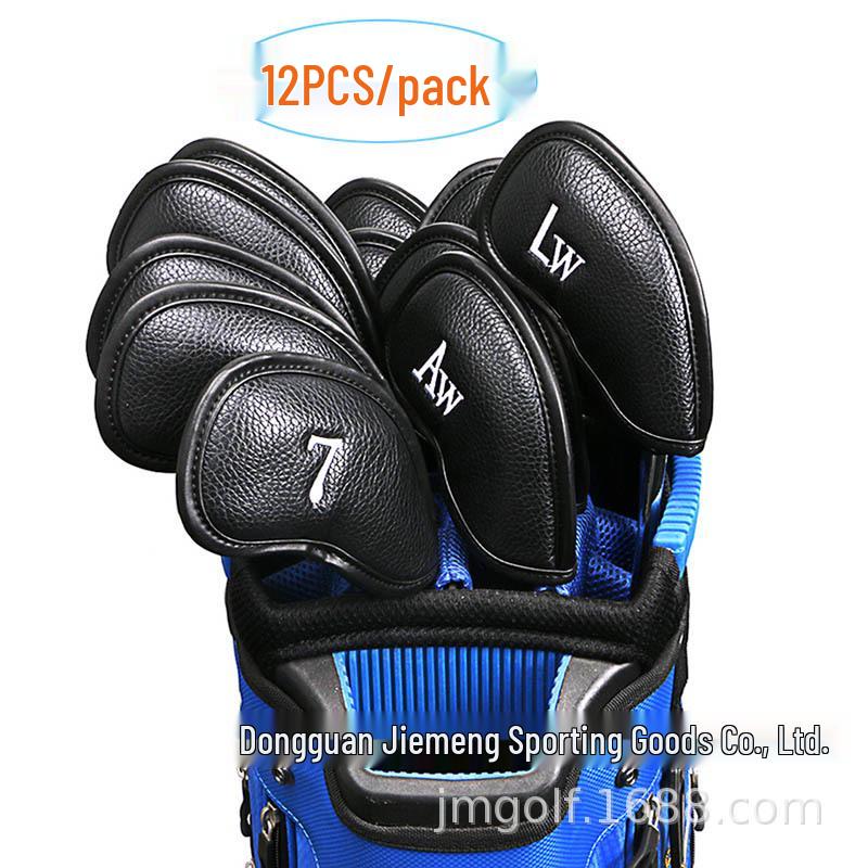 12-Piece Lychee Pattern PU Leather Golf Club Covers - Scratch & Wear Resistant