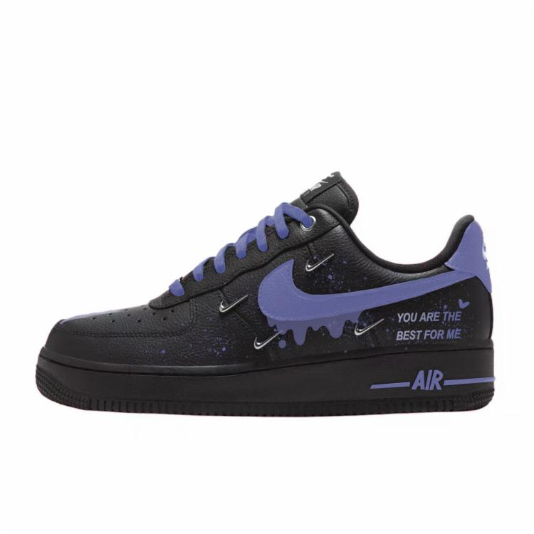 Nike Air Force 1 Abrasion Resistant Low top Skateboard Shoes Women's Black Purple HQ1180-001(Team352-)