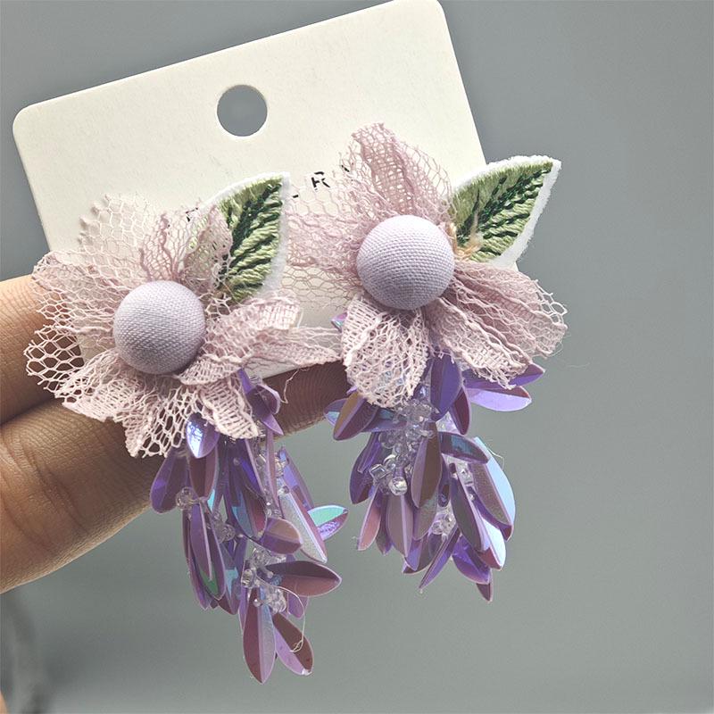 Fashionable Sequin Flower Tassel Earrings for Women - Versatile, Sweet, Girly, with Colored Beads for a High-End Feel
