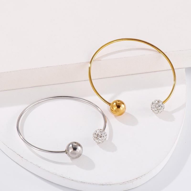 Titanium Steel Openable C-Shaped Bracelet with Diamond Round Beads