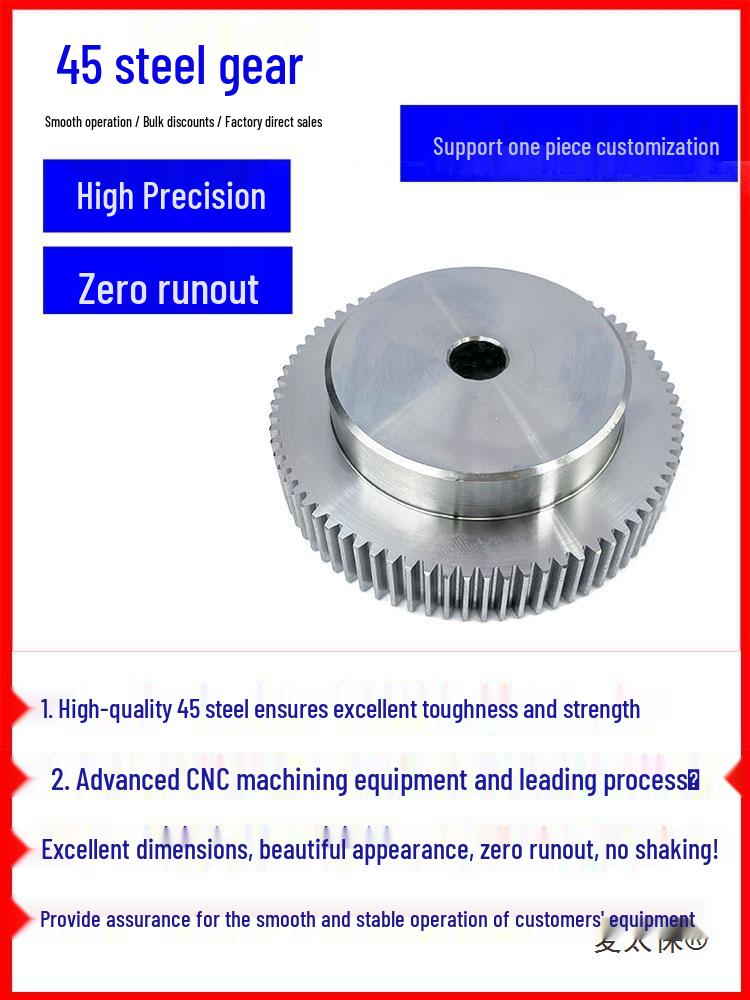 High Carbon Steel 45 Gear Set: Helical, Rack, Worm Design with 100-150 Teeth Boss.