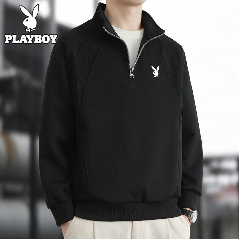 PLAYBOY Men's American Style Stand Collar Half-Zip Casual Long Sleeve Sweatshirt
