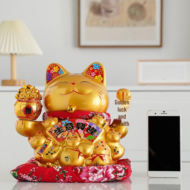 Ceramic Waving Fortune Cat Figurine for Home and Shop Decor