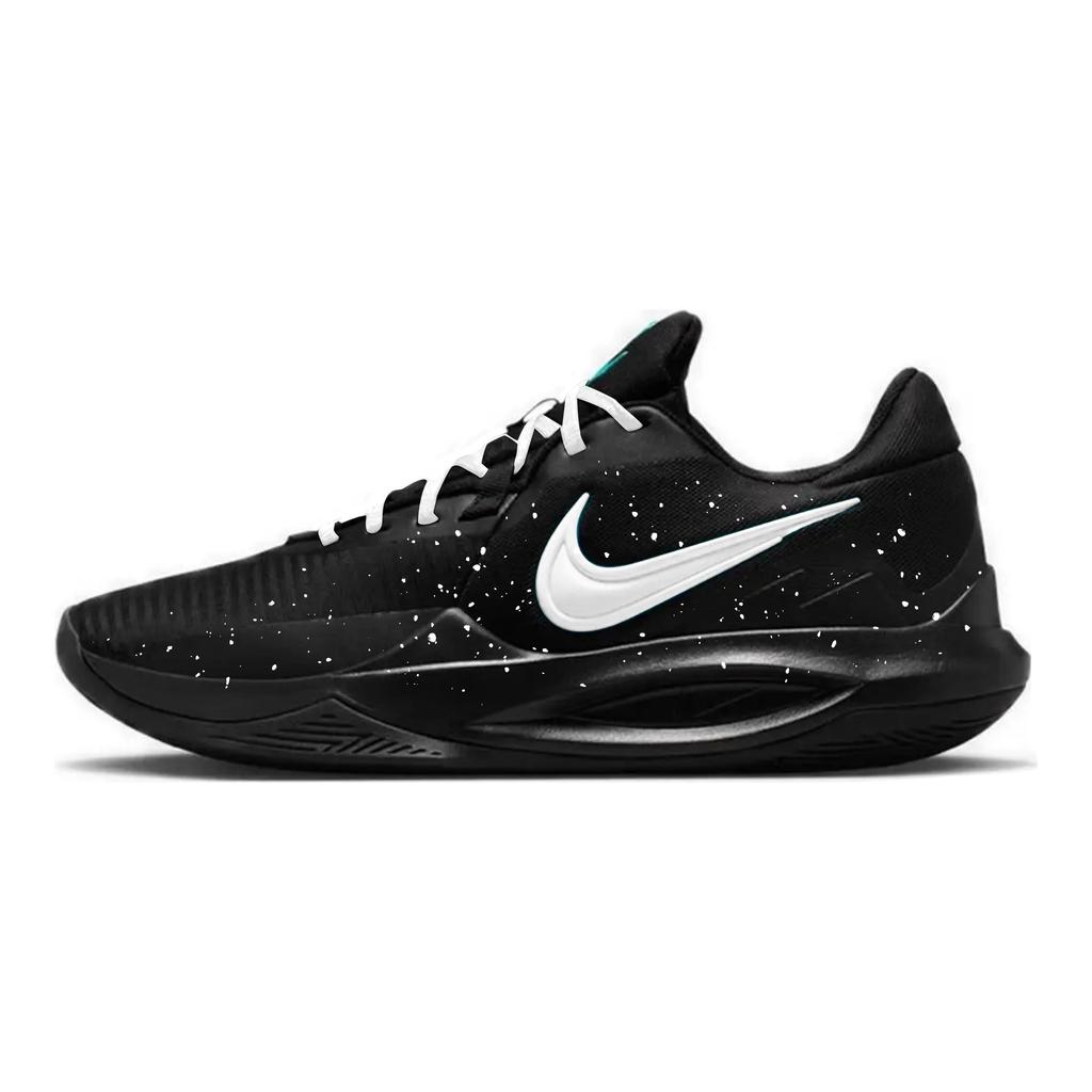 Nike Precision 6 Abrasion Resistant Slip Resistant Low top Basketball Shoes Men's Black White I07605-040 (Team1392-)