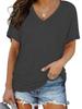 Summer Women's T-Shirt V-Neck Solid Short Sleeve Top