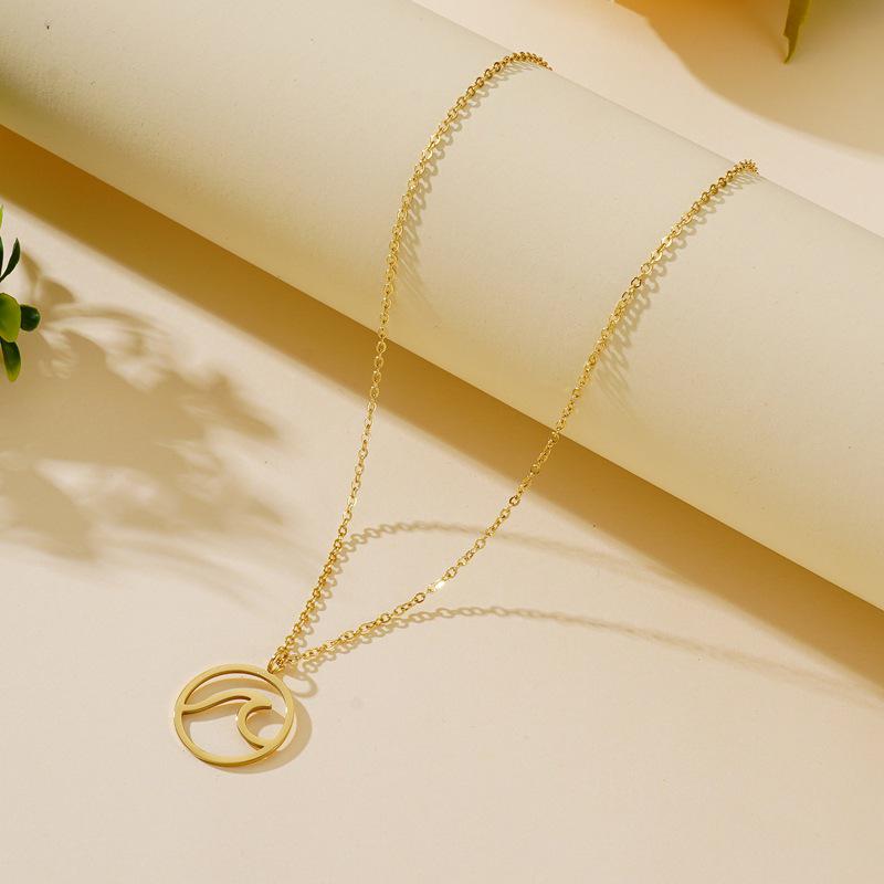 Elegant Wave Pendant Necklace - Stainless Steel Fashion Accessory for Women