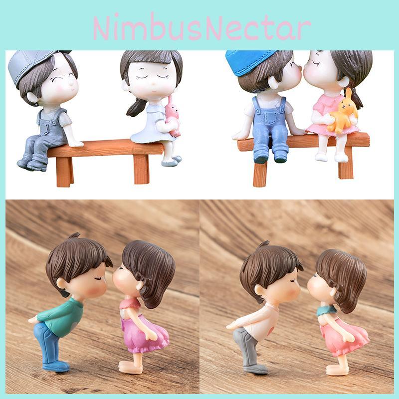 Charming Bench Couple Kissing Dolls Set For Exquisite Miniature Garden Decor