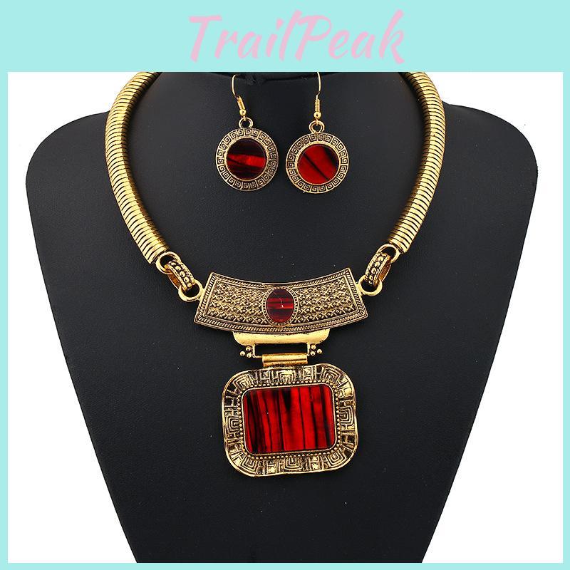 Geometric Alloy Necklace Earrings With Vintage Finish For Boho Fashion And Daily Wear