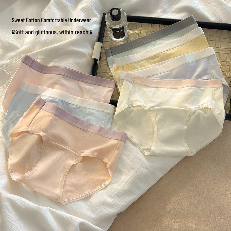 7A Antibacterial Cotton Women's Breathable Color Block Extended Crotch Underwear – Comfortable and Simple Design for Girls