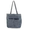 Casual Washed Denim Shoulder Bag, Fashiable Hg Kg Style, Large Capacity Student Backpack for Class, Commuting Tote Bag
