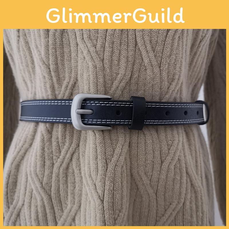This women's belt features genuine cowhide leather with double-layer construction, delivering durability and a refined look. The alloy buckle with a pin closure ensures a secure fit, while the belt measures 2-4 cm in width and extends up to 115 cm in length. Suitable for office wear or street fashion, it enhances various outfits. Wipe clean with a damp cloth for maintenance.