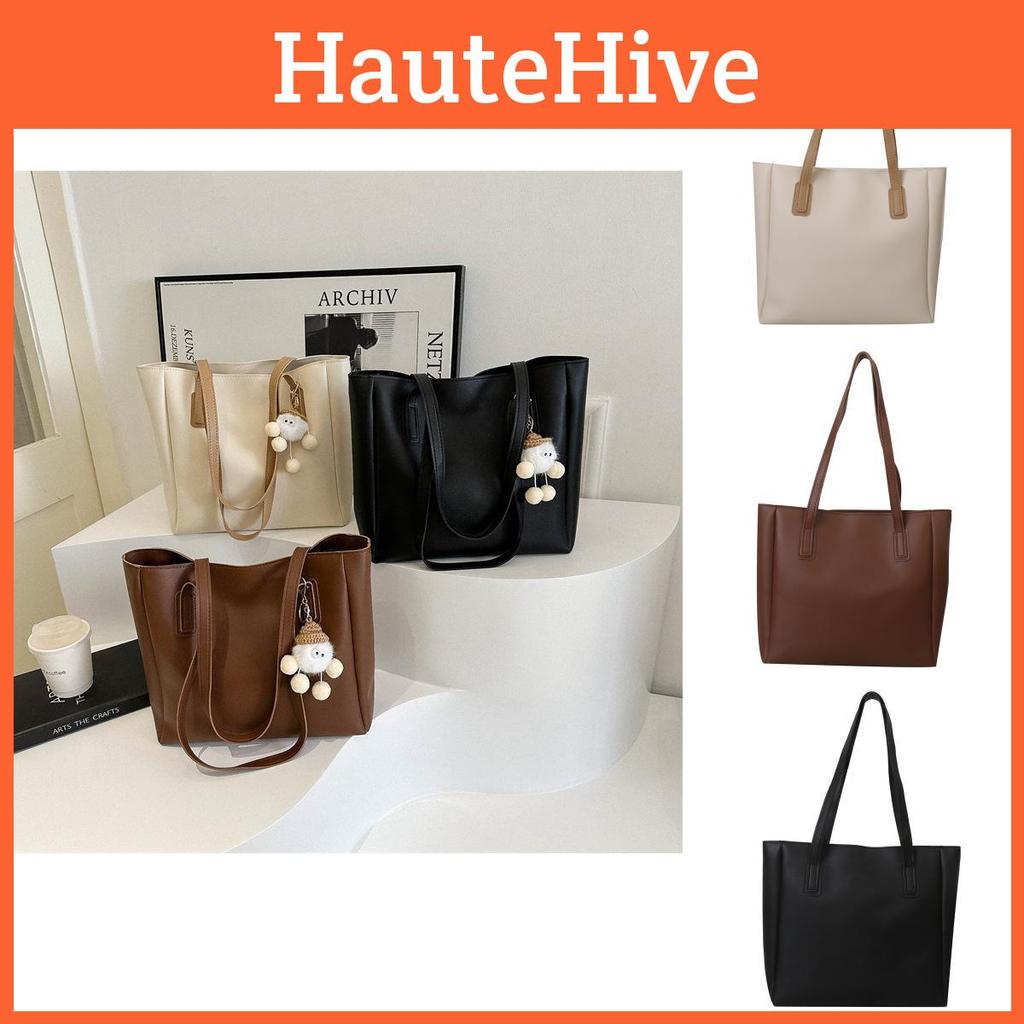 Versatile Pu Leather Tote Bag For Women 2023 Street Style Commuter Shoulder Bag With Inner Pockets