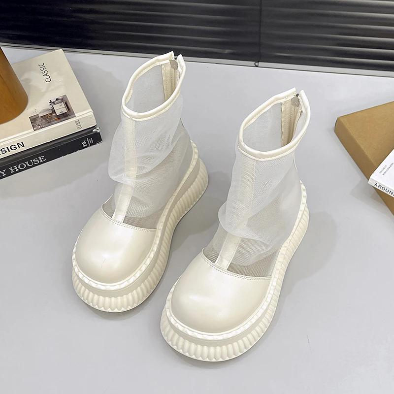 Summer Fashion Mesh Surface Women's Boots Shoes for Women 2026 New Sponge Bottom Solid Hollow Out Breathable Ladies Shoes