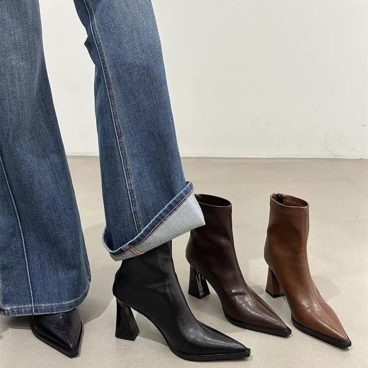 2026 Women Fashion Chelsea Ankle Boots Basic High Heels Boots Pointed Toe Shoes Women Band Non-slip Comfortable Boots 9989