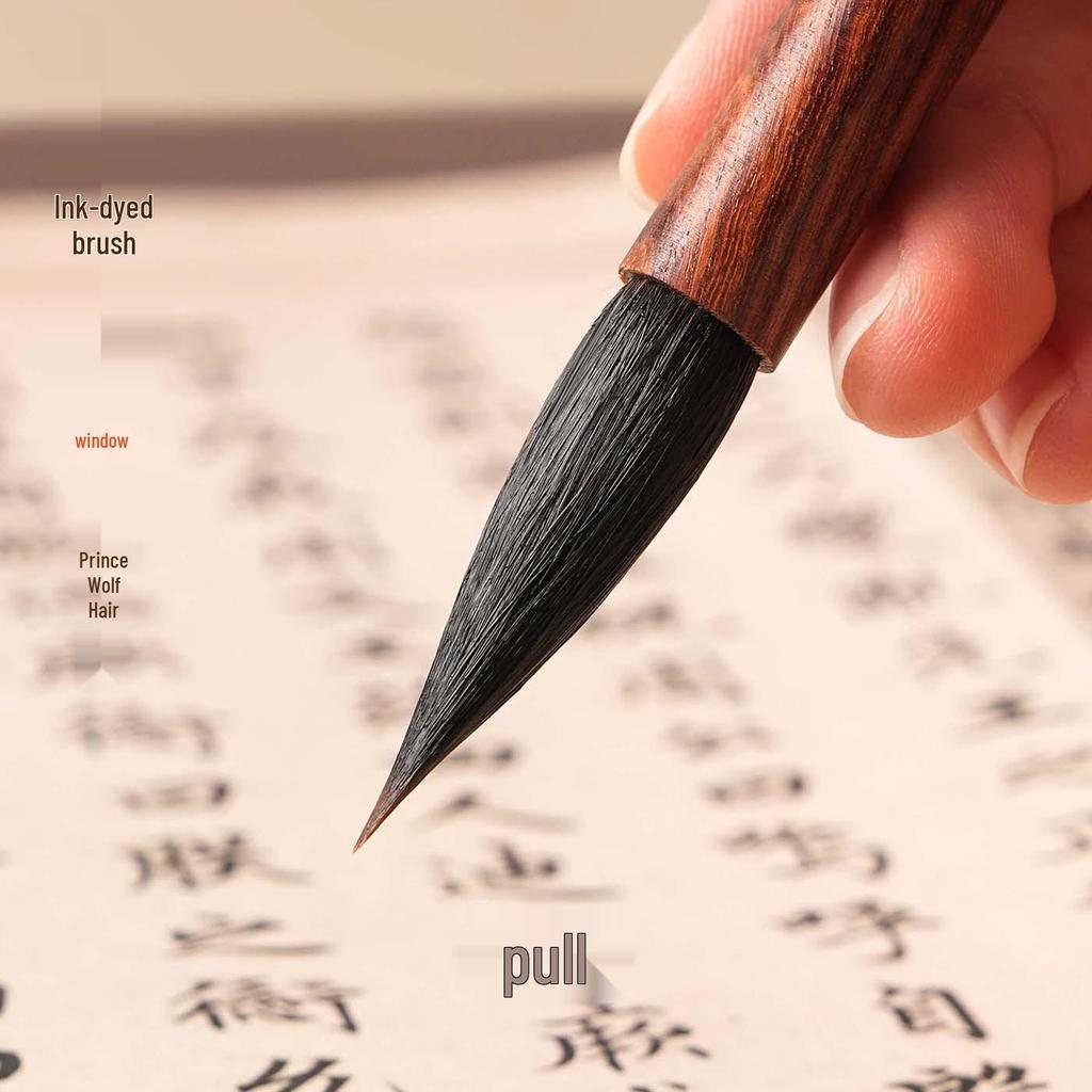Ink-Dyed Purple Wolf Hair Calligraphy Brush for Beginners - Small Running Script & Medium Regular Script
