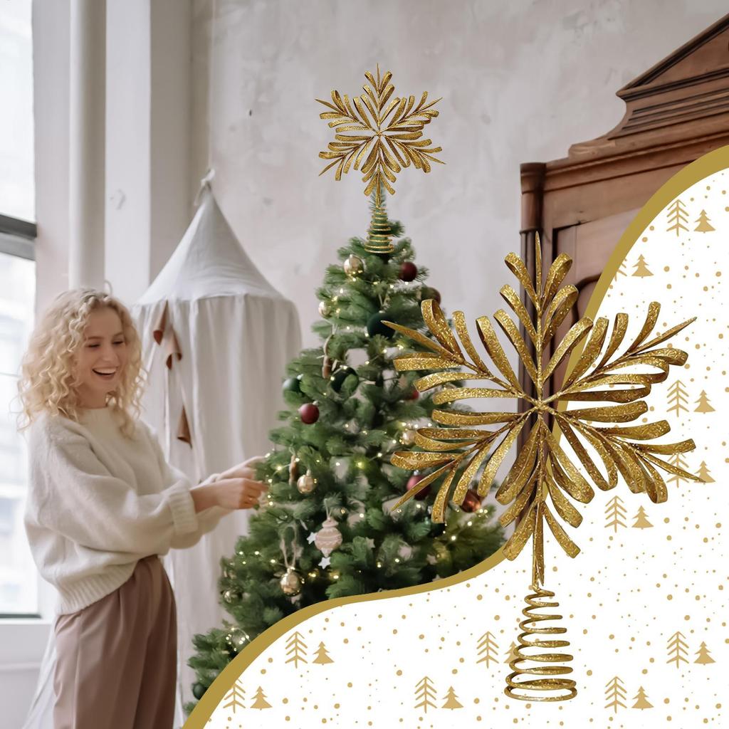 Tree Topper 3D Snowflake Christmas Star Tree Topper Lightweight Metal Decorations Ornaments For Fall Home Indoor Living Room