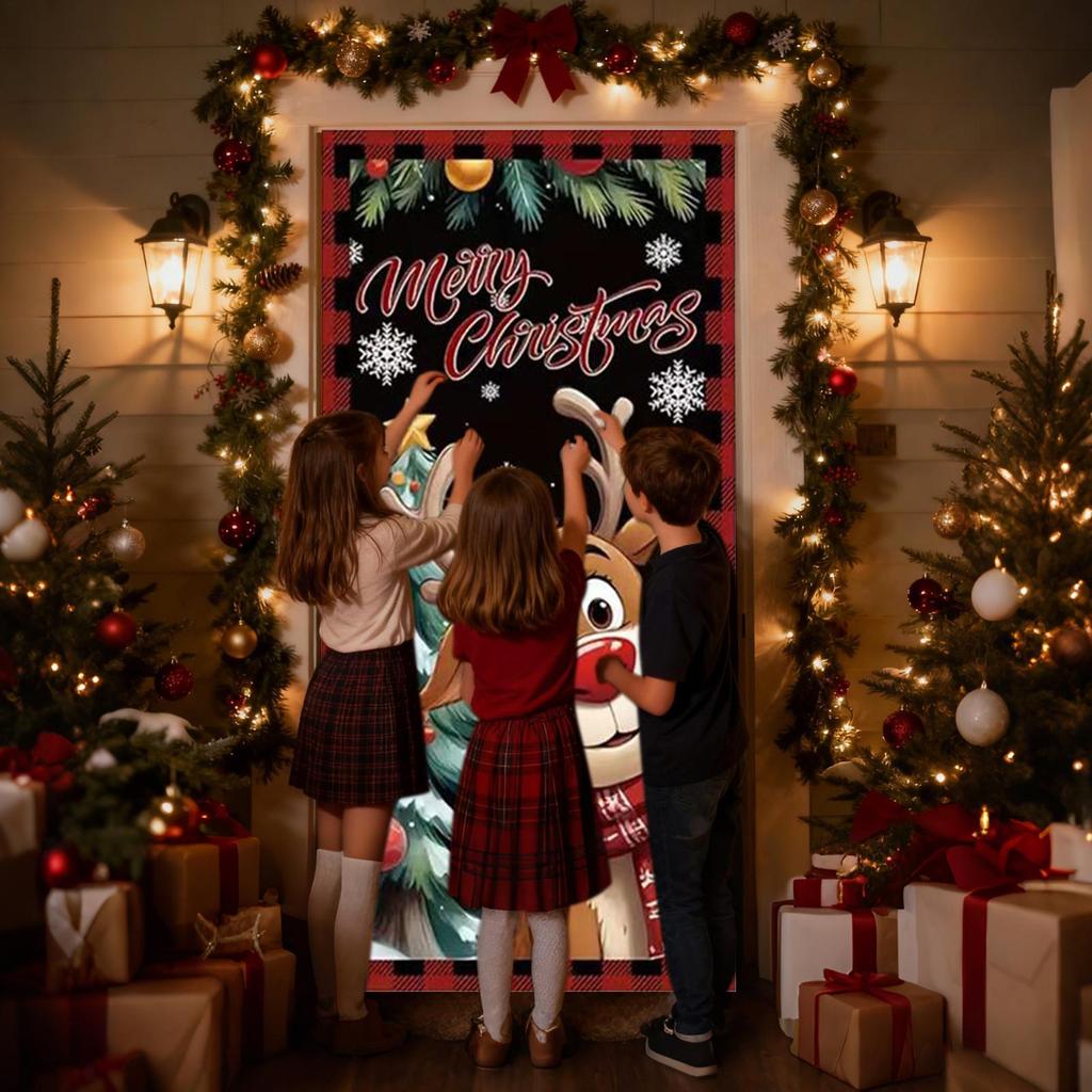 Door Cover For Christmas 71x35inch Large Festive Reindeer Front Door Covers Hanger Backdrop Holiday Decoration For Home Party