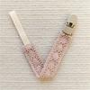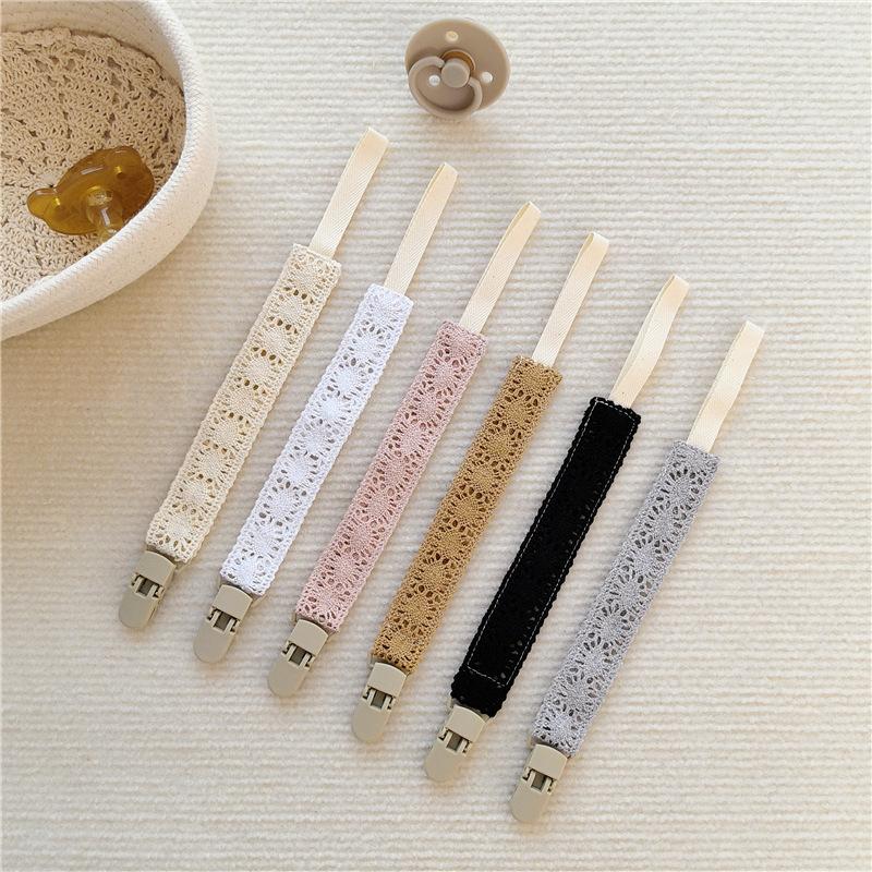 The pacifier chain is clamped in the corner of the baby's clothes to prevent the pacifier from falling on the ground and getting dirty;