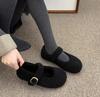 Fashion Round Toe Wool Ballet Flats Woman Concise Warm Plush Loafers Ladies Brand Design Fluffy Mary Jane Shoes in Red Grey
