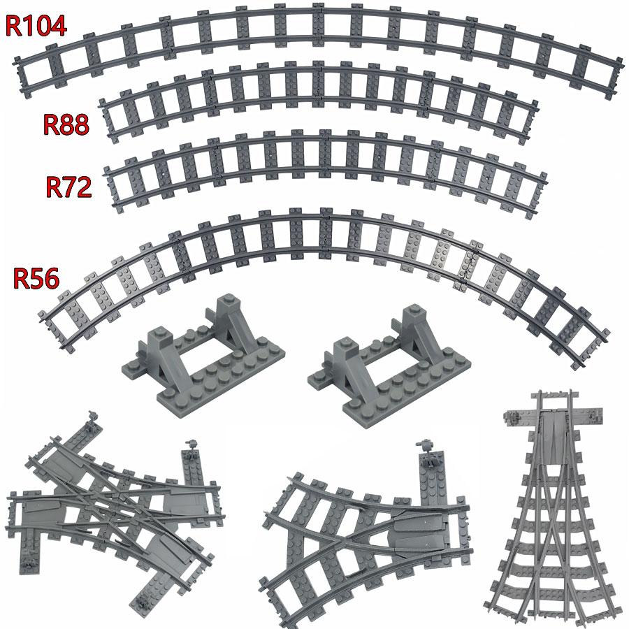 Works With 53401 Train Rail Curve Tracks R56 R72 R88 R104 MOC City Brick On-Off Switch Cross Forked Curved Rails Construction Block Playthings