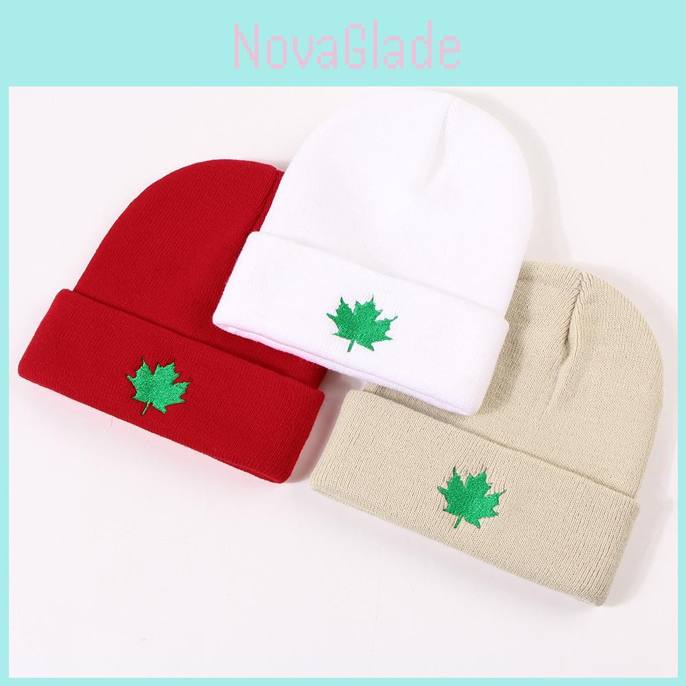 Ladies' Fashion Maple Leaf Embroidery Knit Hat Warm Windproof Winter Beanie
