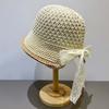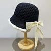 Hollow Out Sunshade Basin Cap Temperament Bow Fisherman Hat Knitted Bucket Hat Travel