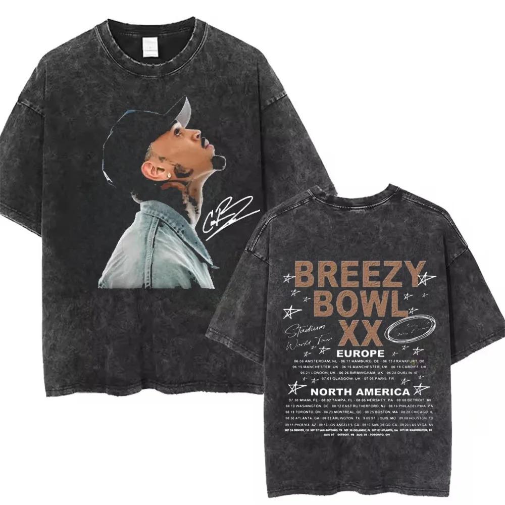 Chris Brown Breezy Bowl XX Concert Cotton Tee Tour Washed T Shirt Vintage Gothic Top Men's Portrait Hip Hop Streetwear