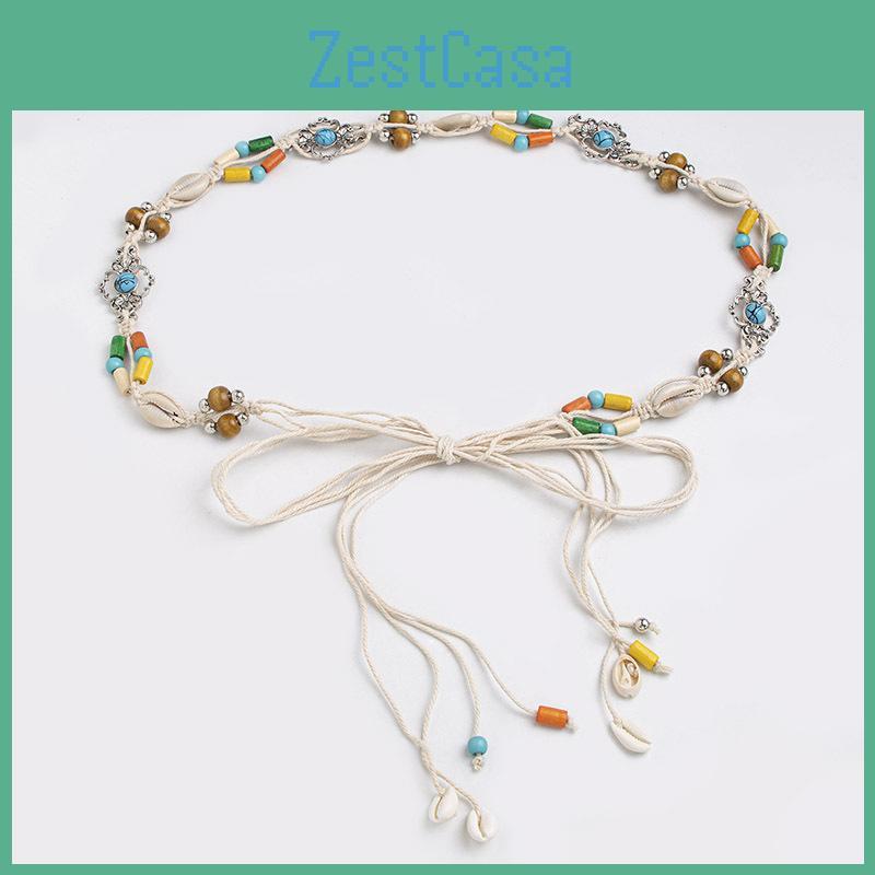 Bohemian Waist Cord With Embellished Shells And Wooden Beads For Beach And Vacation Accessories
