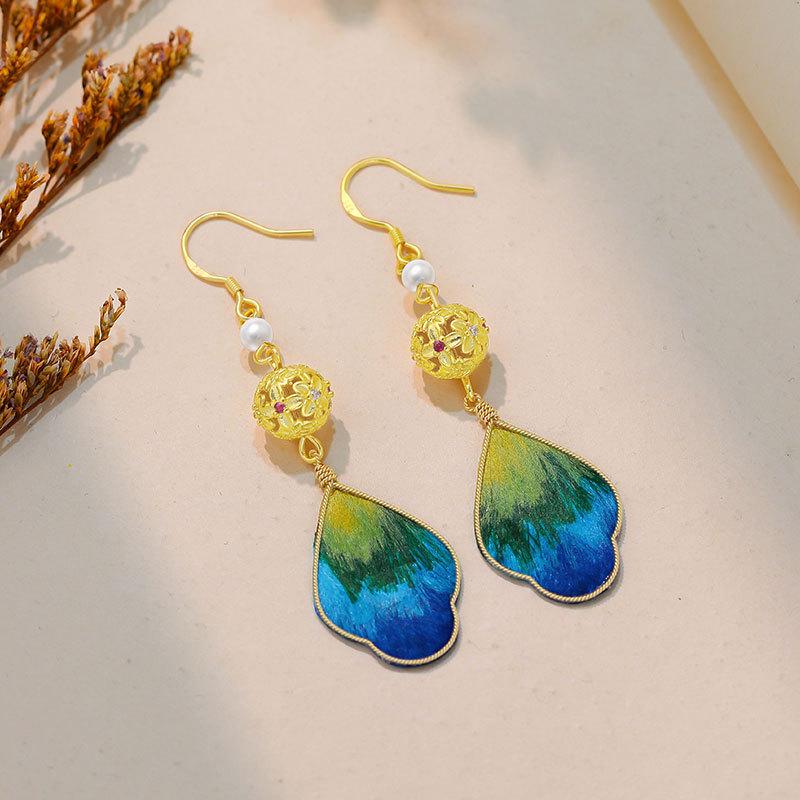 925 Silver Chinese Velvet Flower Earrings: Handcrafted Silk Ear Hooks for Women’s Hanfu & Qipao