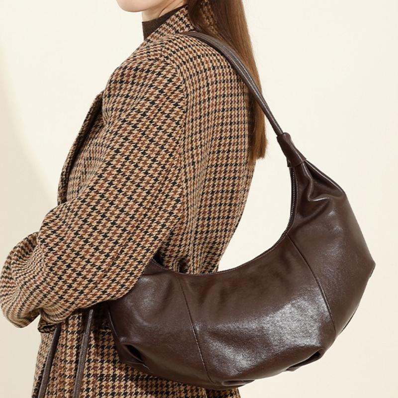 Ladies' Soft Genuine Cow Leather Dumpling Bag, Large Capacity Minimalist Crossbody Bag Female Luxury Fashi Underarm Hobo