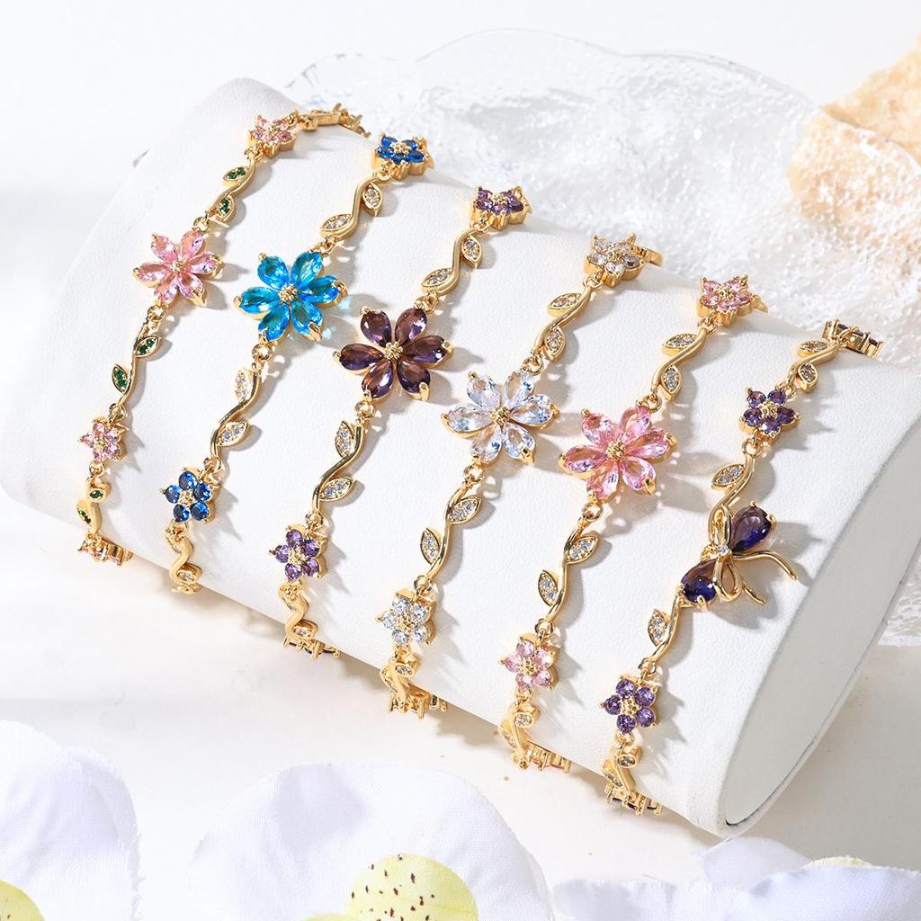 Charming Heart Flower Butterfly Bracelet: Valentine's Day Gift in INS Style Zircon & Copper.