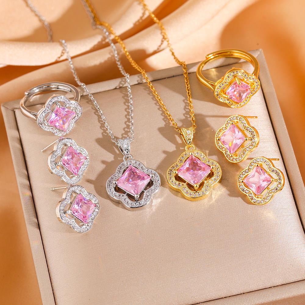 Four-leaf Clover Stylish and Elegant Light Luxury Pendant Zircon Exquisite Clavicle Chain Earrings Titanium Steel Necklace Set